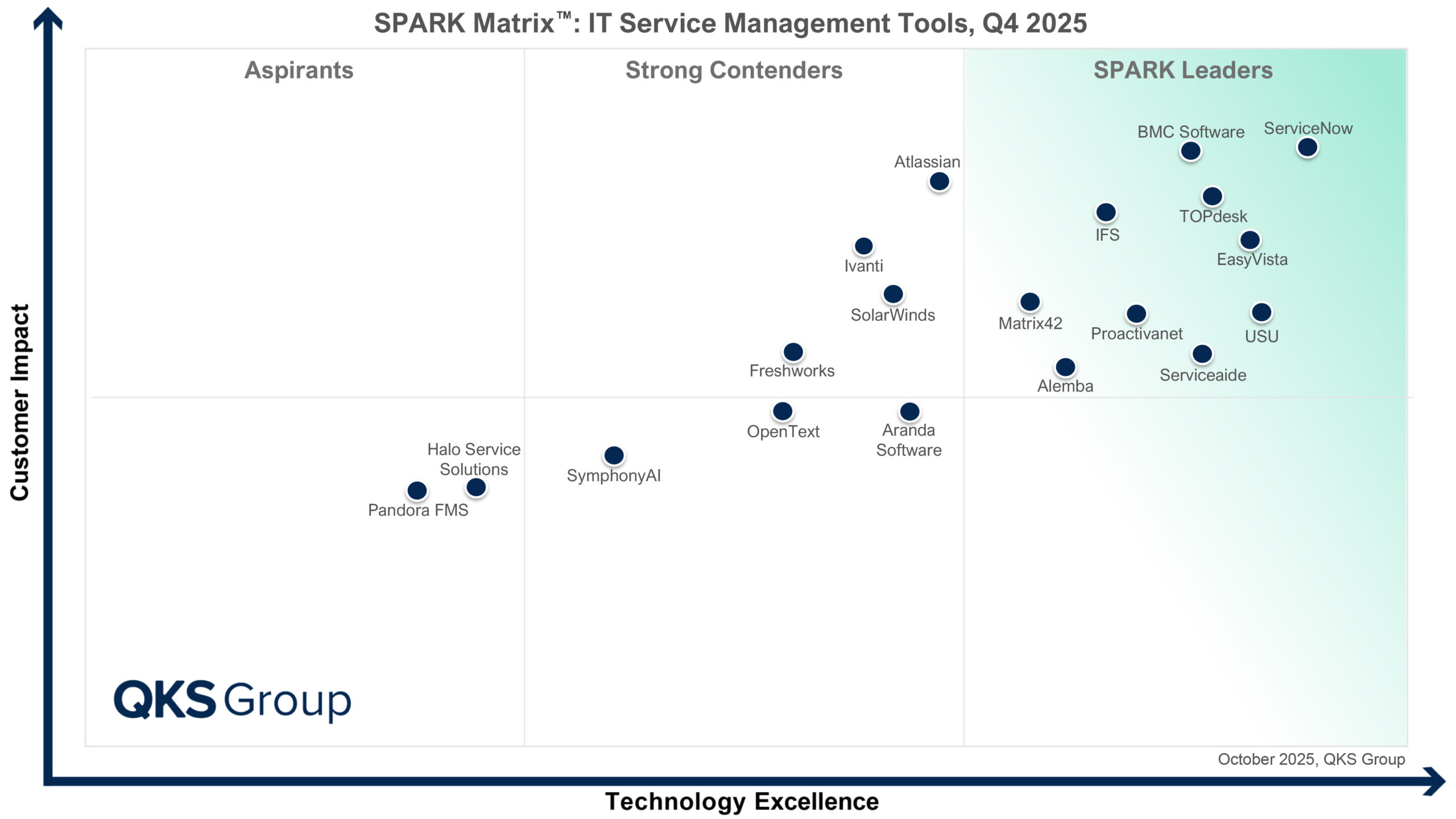 EasyVista posicionada como líder na SPARK Matrix™: Ferramentas de Gestão de Serviços de TI, 4.º trimestre de 2025, pelo QKS Group